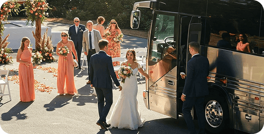 Traveling to wedding events in Washington DC has never been easier than with Oui Buses in charge. Book a bus with a professional driver to chauffeur your guests to a wedding ceremony, reception, bachelor or bachelorette party, bridal shower, and any other wedding celebration.